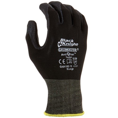Black Knight Gripmaster gloves have Multi-layered Gripmaster technology that prevents oil penetration while repelling water ensuring excellent grip with other surfaces. Anti-Bac anti-microbial treatment provides protection against harmful bacteria and an odor barrier. There are no streaks on the inside of the glove that could cause irritation or heat build-up. Machine washable prolongs the life of the gloves without compromising the effectiveness of the Anti-Bac treatment. 13-gauge lycra/nylon provides elasticity, snug fit, and breathability. The thin coating provides excellent flexibility and dexterity, which does not restrict hand movements, and enables to feel the touched surfaces. Certified according to EN388: 2016, rating 4131X.