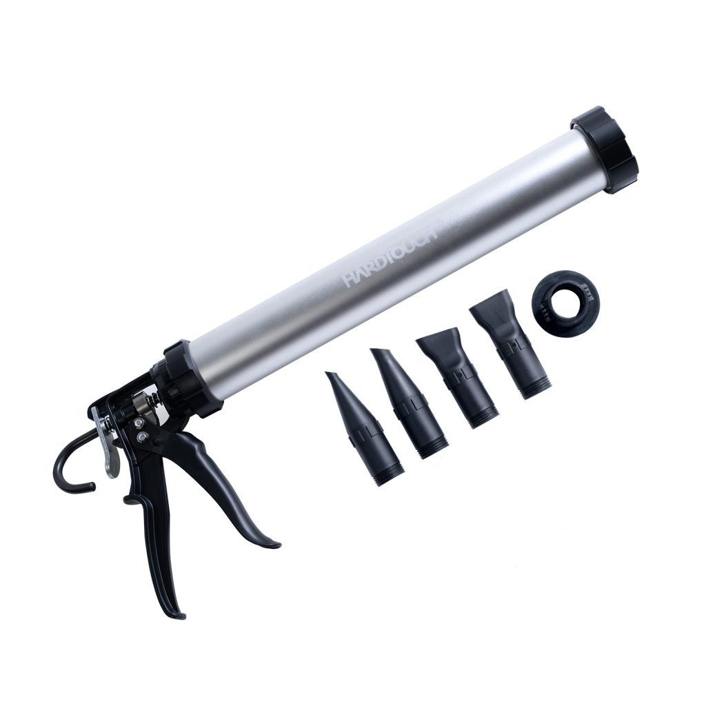 A Heavy-duty Caulking Gun Barrel sausage application is a higher-end gun made for Professional users. It’s an essential tool for waterproofing. It’s called a sausage gun because the product comes packed in a foil tube similar to sausage packaging. Instead of the tip being on the product, it’s on the end of the gun and is reusable. Once you make the perfect cut on the tip once, you can use it over and over again.