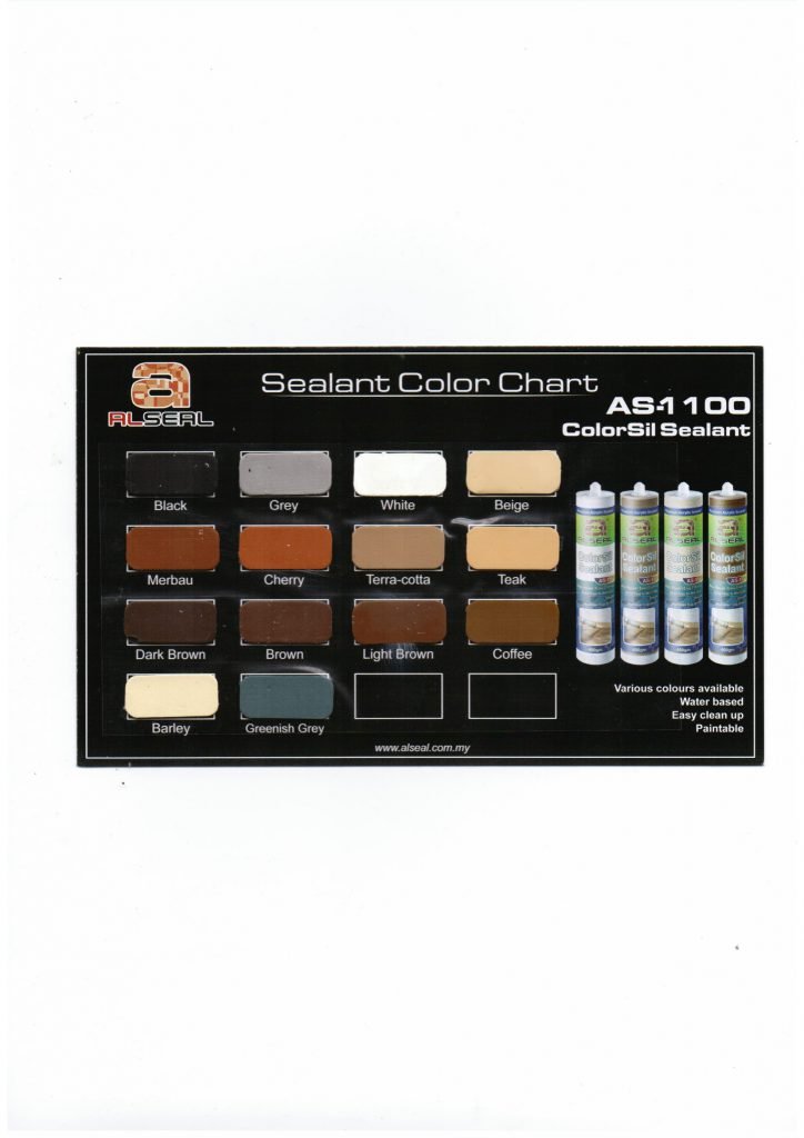ColorSil sealant AS-1100 is a paintable and flexible, premium quality acrylic filler. Alseal AS-1100 is formulated for sealing gaps and joints. Where slight movements or vibration if occurred, could cause conventional, non-elastic fillers and putties to crack and fall off. It is flexible enough to avoid cracking due to the drying process. ALSEAL AS-1100 has a vast colours selection, making it suitable to match with the colour of the building materials to be sealed. Coloured Sealant is economical, environmentally friendly, and its adhesion to most porous substrates is good even without primer. Colored sealant can be cleaned up with water.